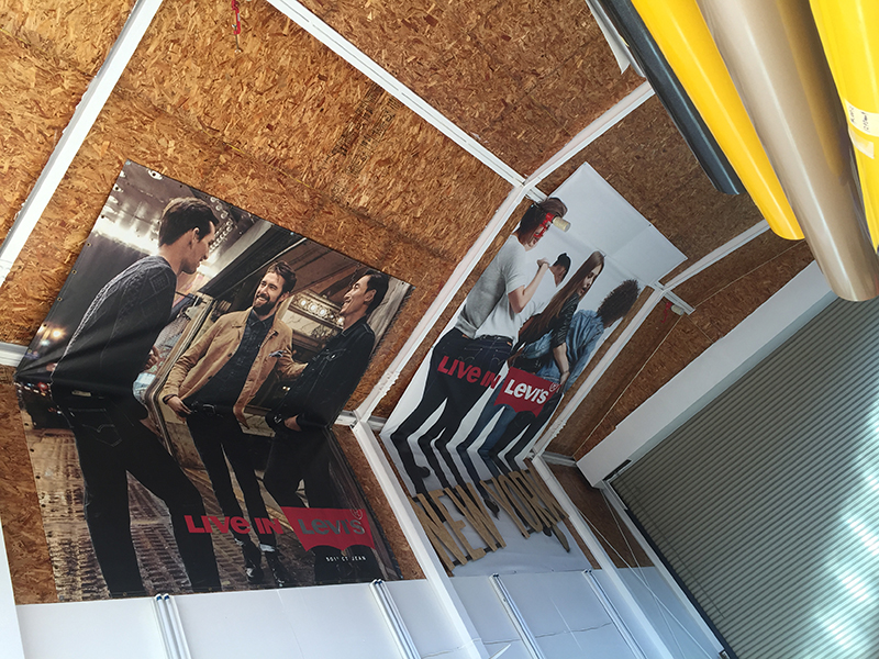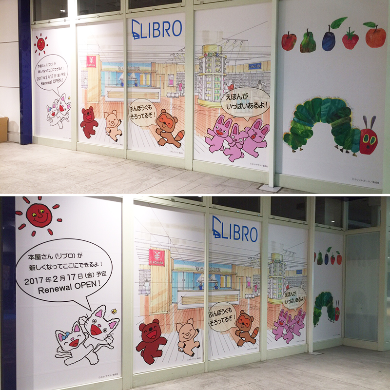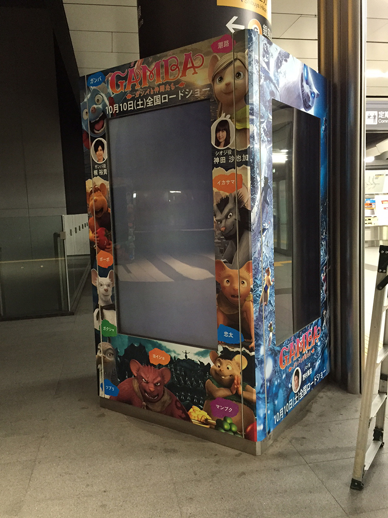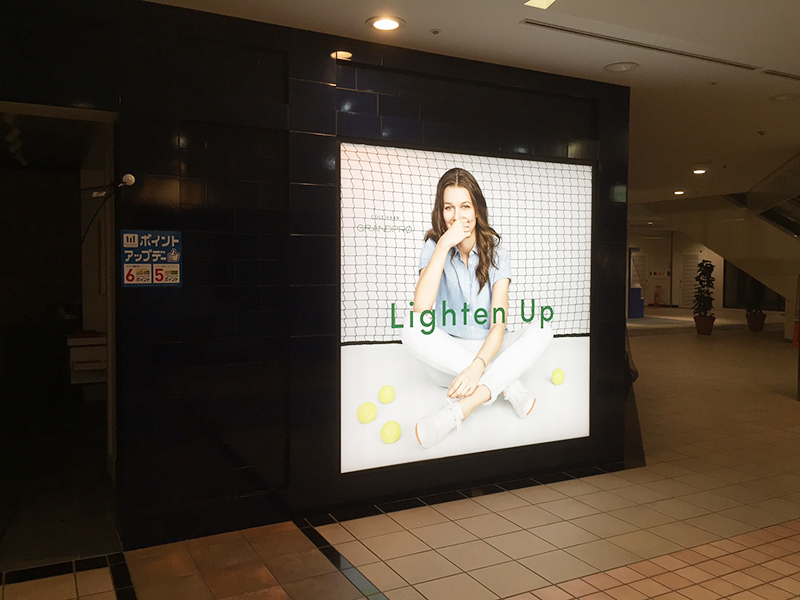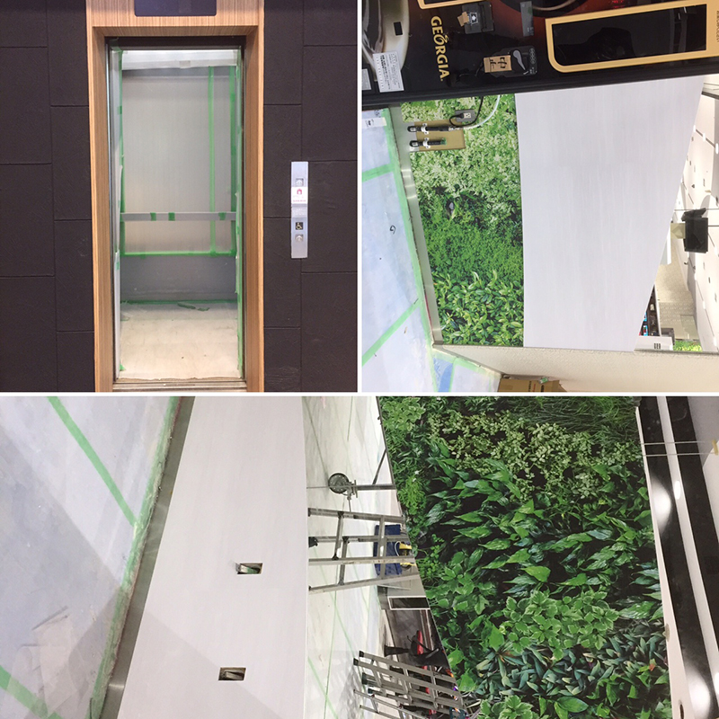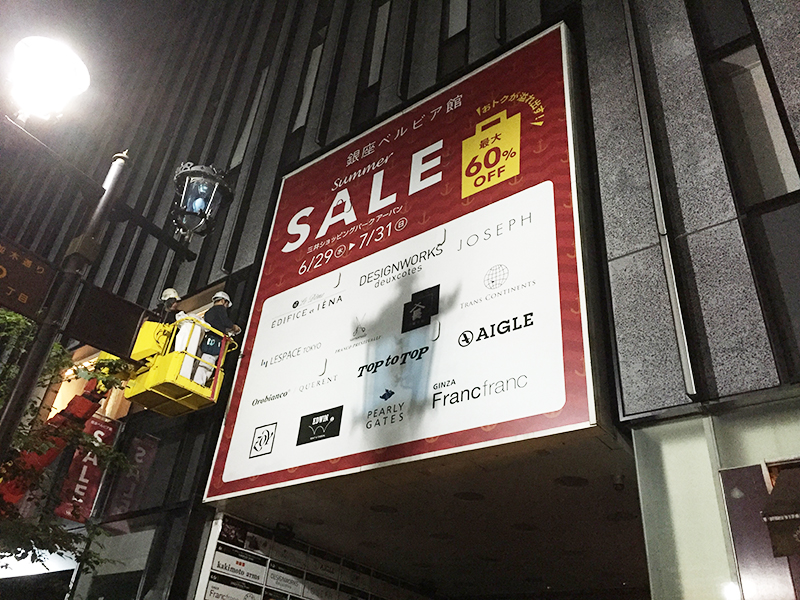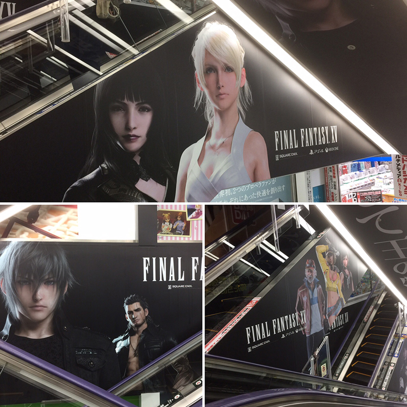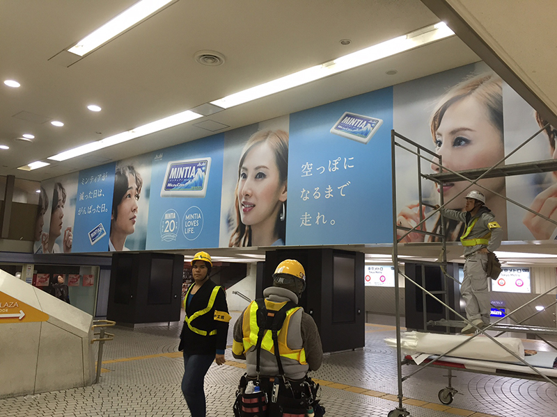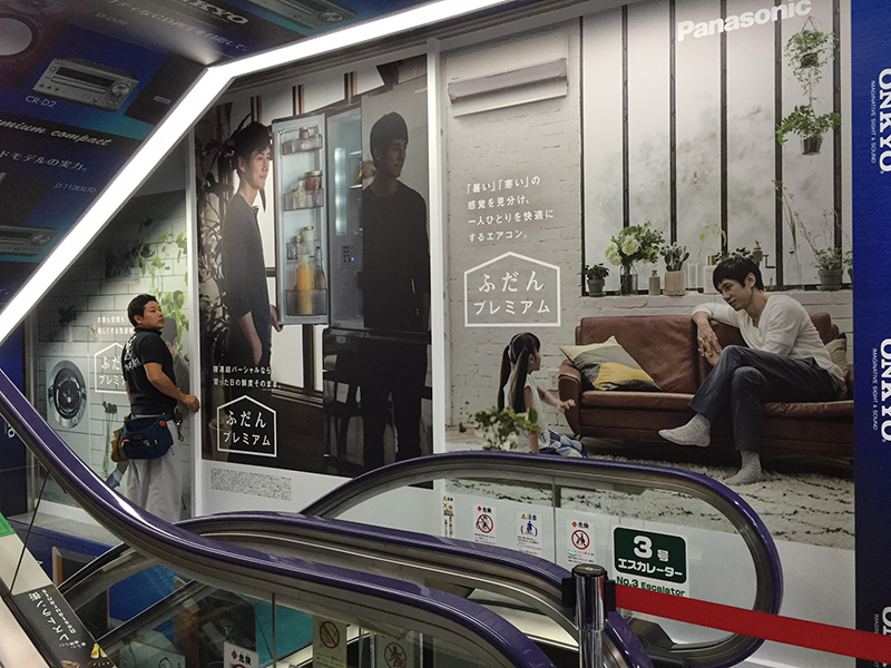 ヨドバシカメラ秋葉原/エスカレーター壁面シート貼り施工
