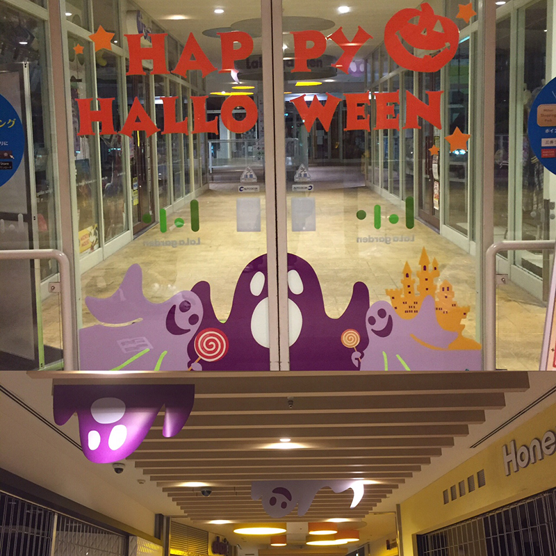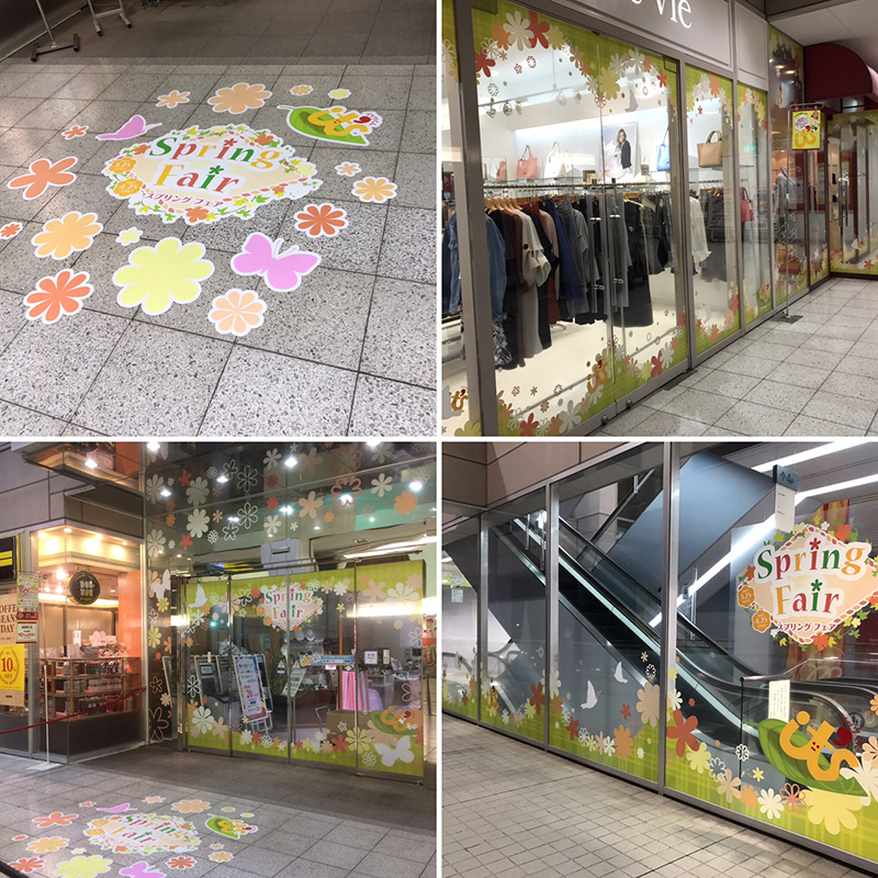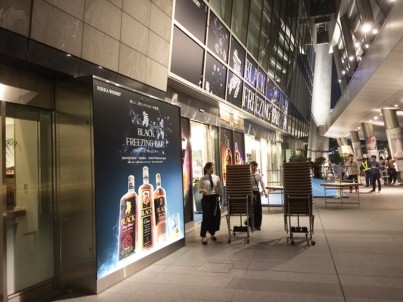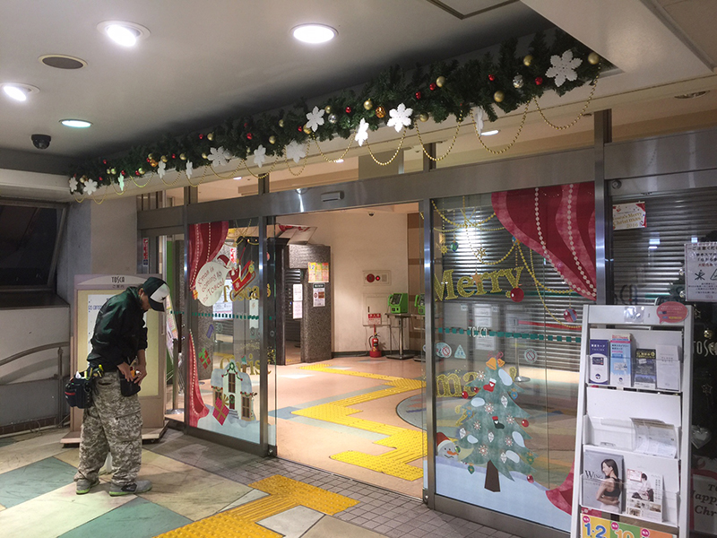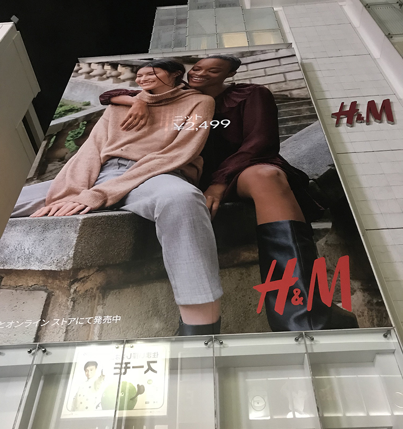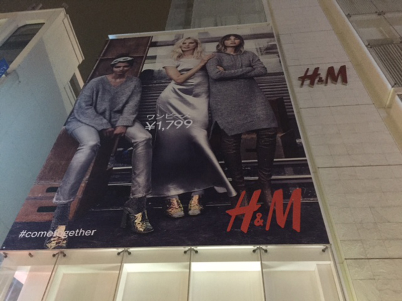H&M原宿ーウインドーシート貼り施行「高所作業」